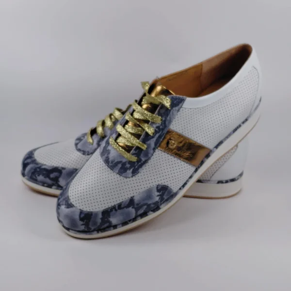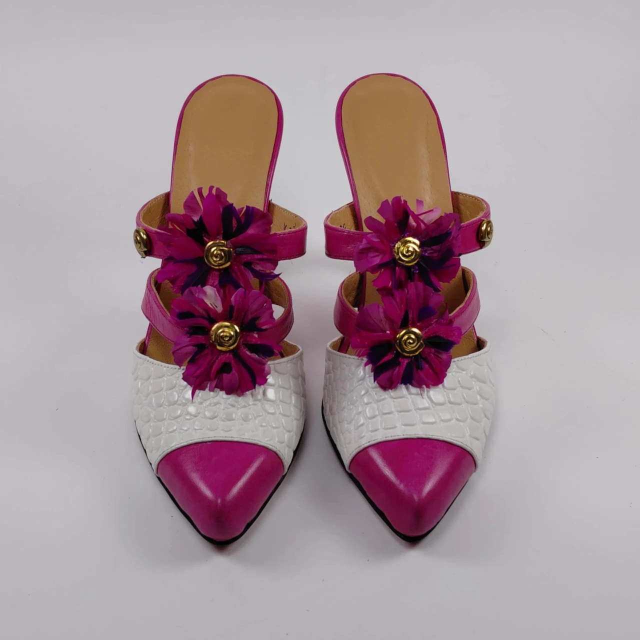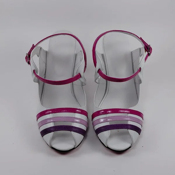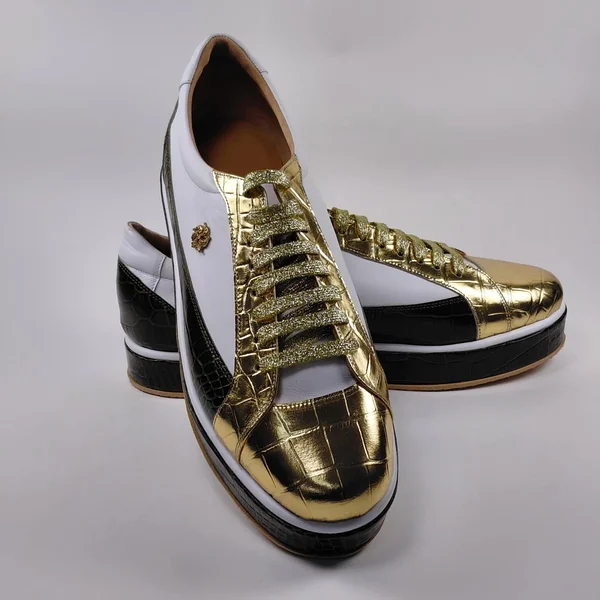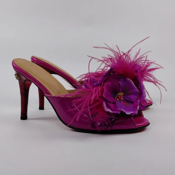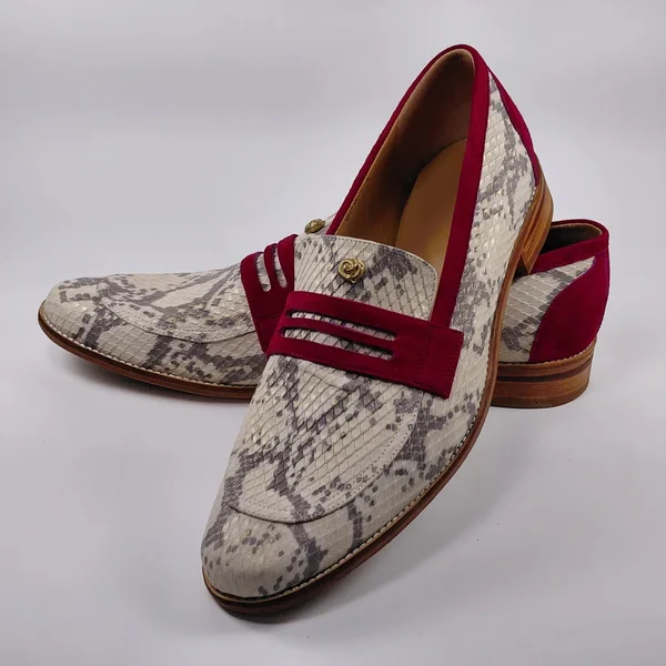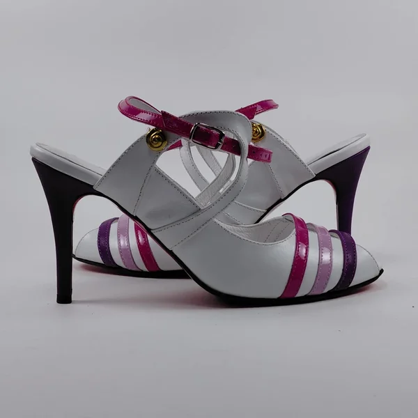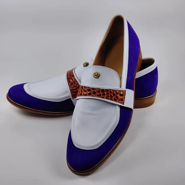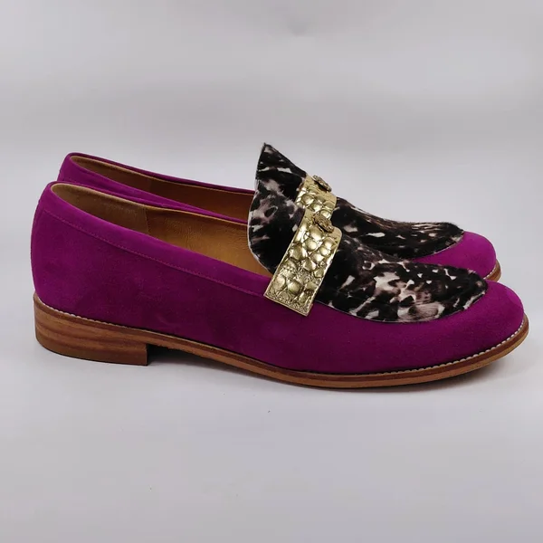 The design aesthetic leans into luxury and excess, balancing structured tailoring with shimmering gowns to evoke an era where ambition, glamour, and appearances ruled supreme. Costume details include power footwear - high heels and loafers in bold purple tones, gold accents, and crocodile textures.