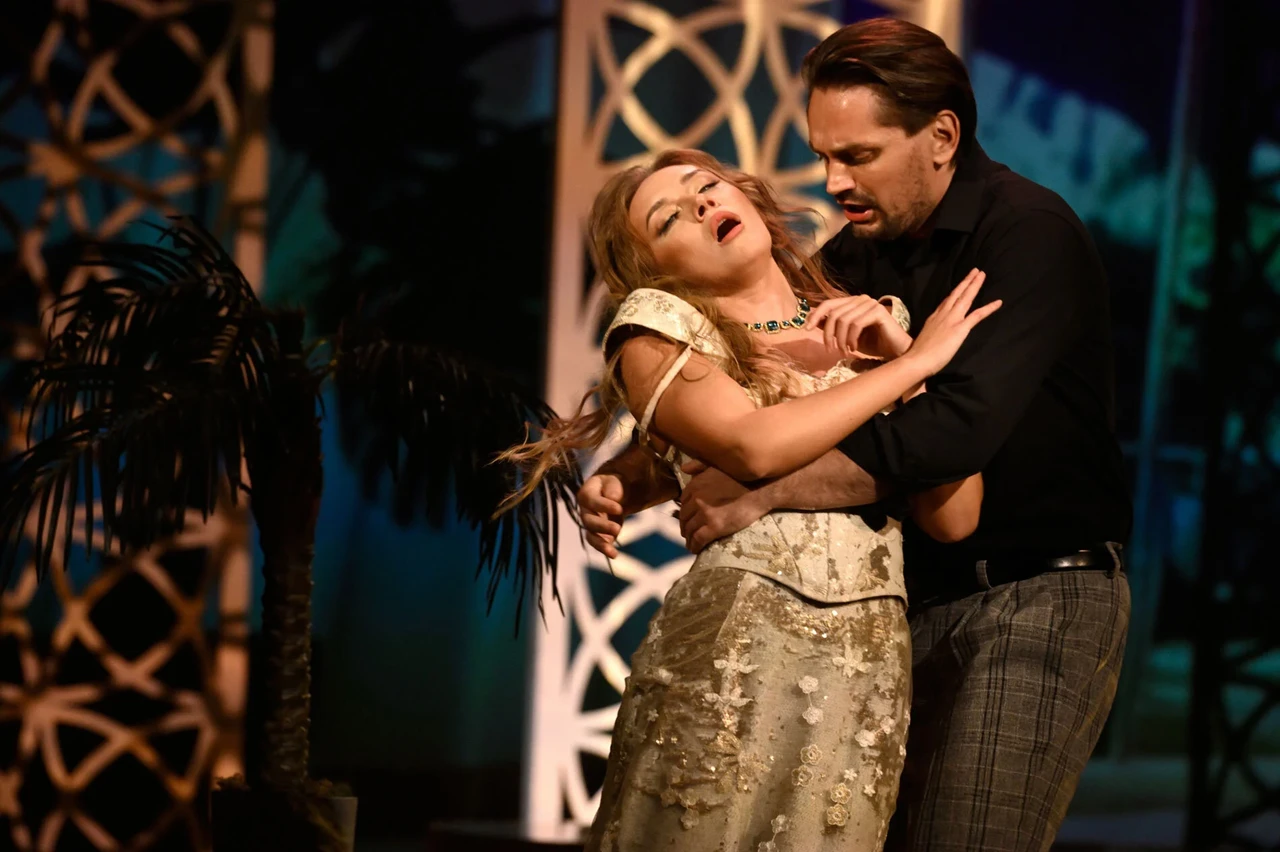 Francesco Cilea’s opera Adriana Lecouvreur at Kaunas State Music Theatre, Lithuania and PromFest, Estonia.Inspired by the life of French actress Adrienne Lecouvreur (1692–1730), the production explores the contrast between the allure of fame and the constraints it brings. A recurring visual motif throughout the set design is a gilded cage, symbolizing the lives of both celebrated actresses and aristocrats—individuals who, despite their privilege and luxurious life, find themselves confined by societal expectations and obligations.