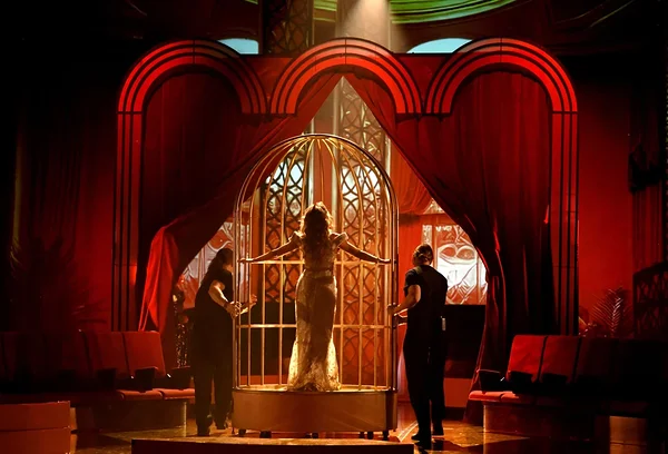 The gilded cage is the main symbol in the scenography, as both the celebrated actress and the aristocrats around her navigate a world where societal expectations confine their personal freedom. Despite the luxury and privilege that surround them, they are trapped by duty, reputation, and the demands of their status - living in a beautiful but restrictive reality.